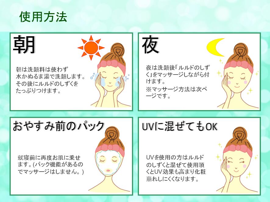 ※パックしたい方はしずくを重ね塗りして、そのままお休みください。