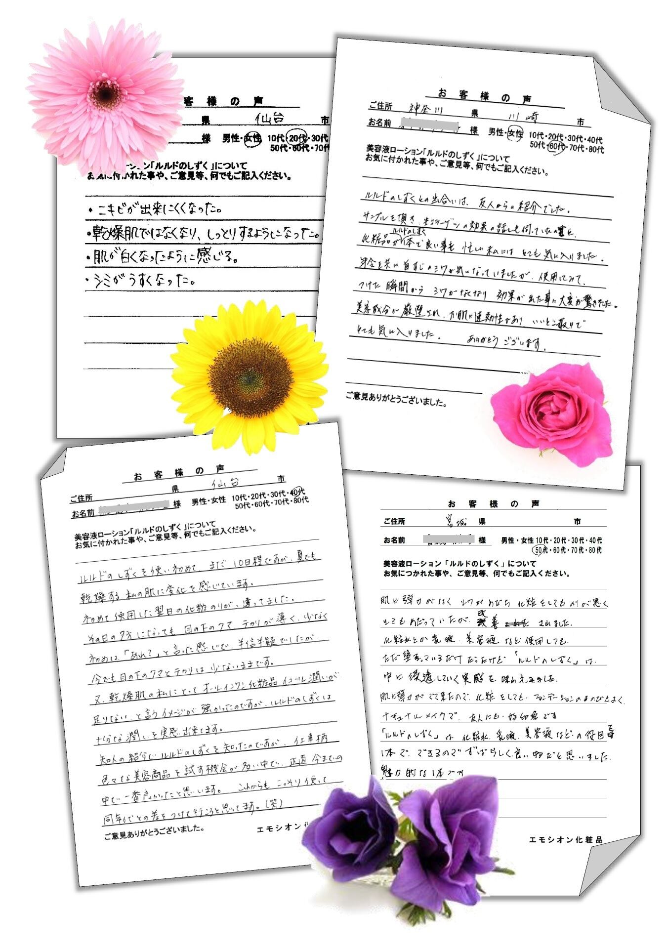 お客様の声 | エモシオン化粧品(スッピン化粧品ショップ)