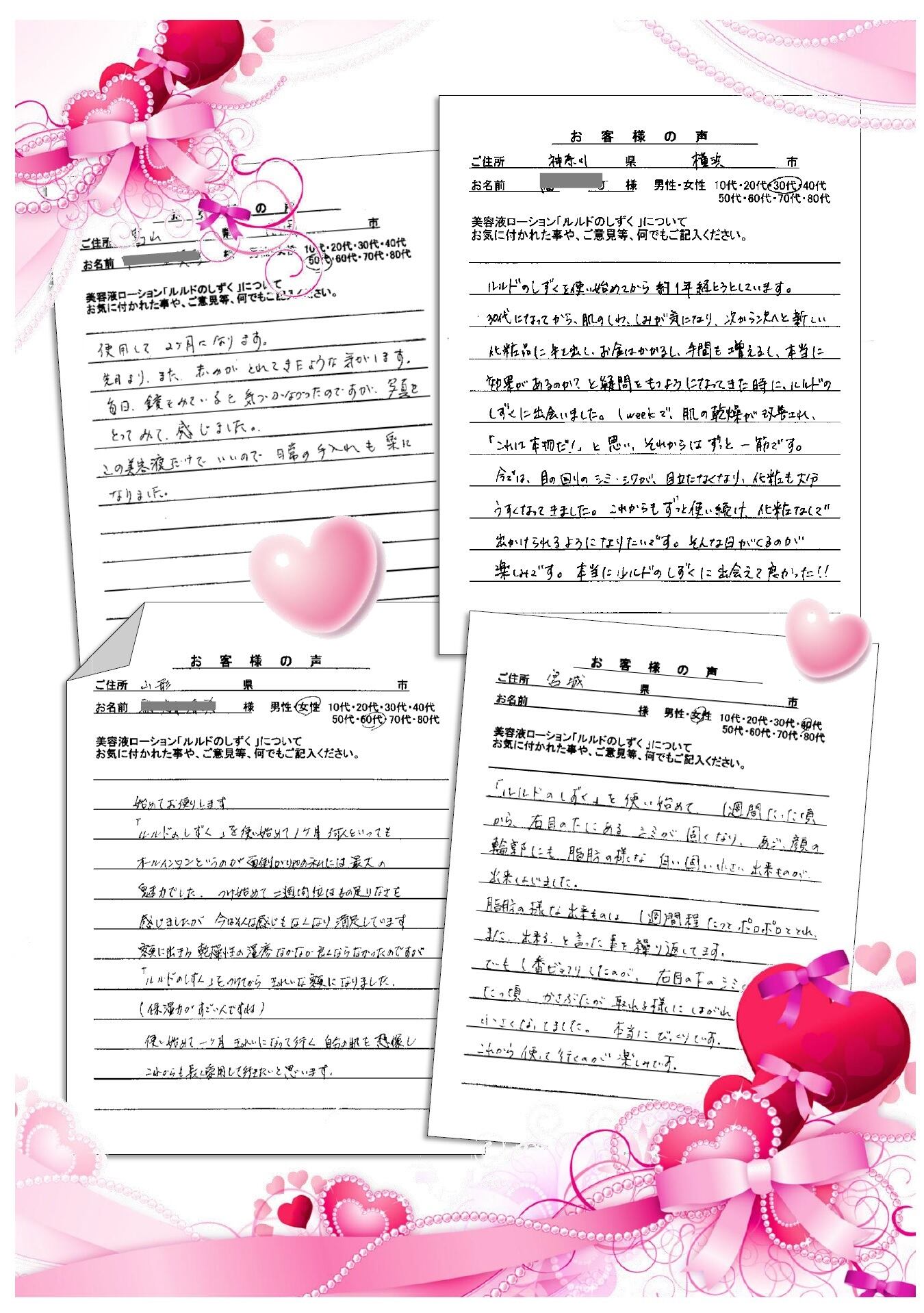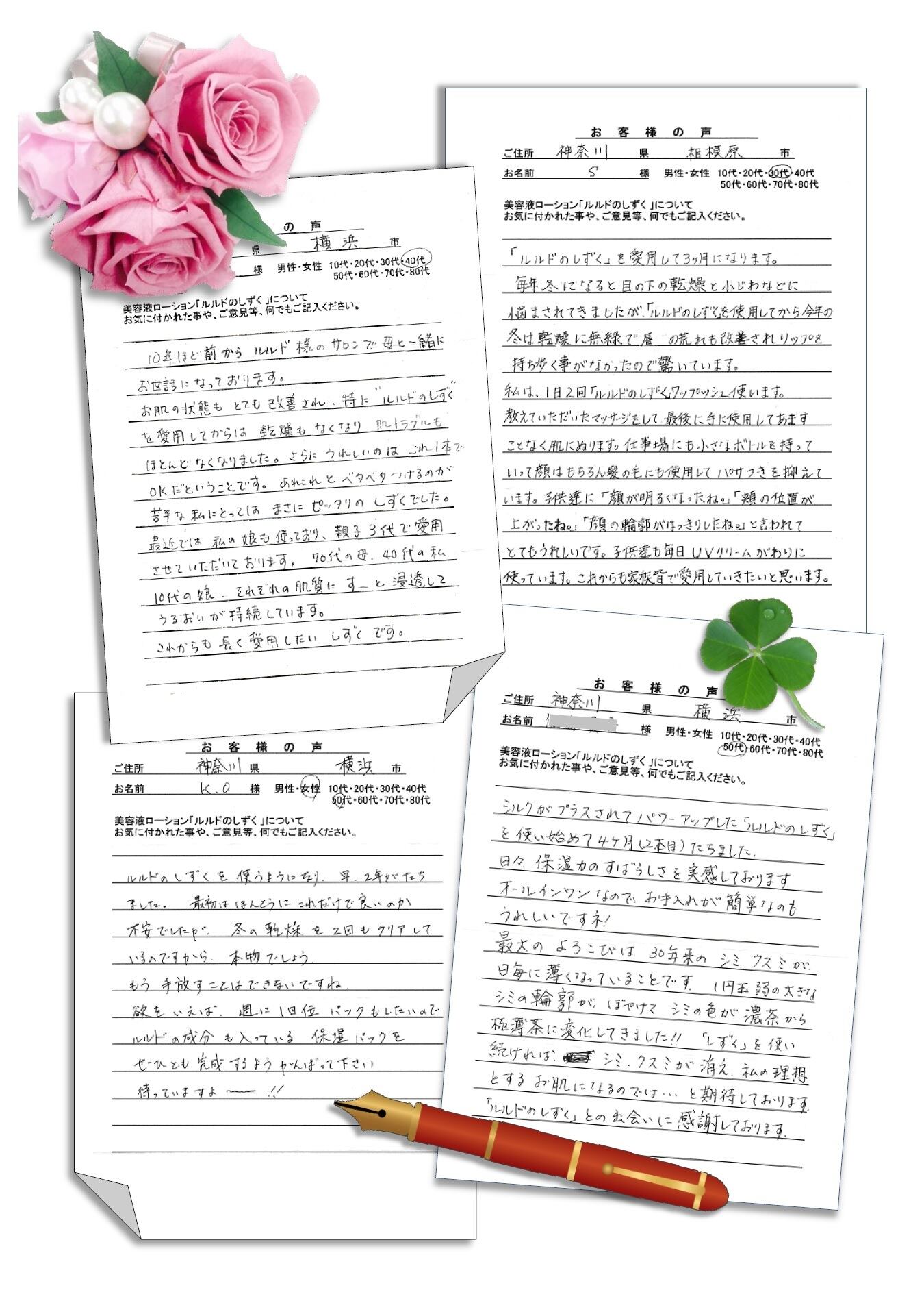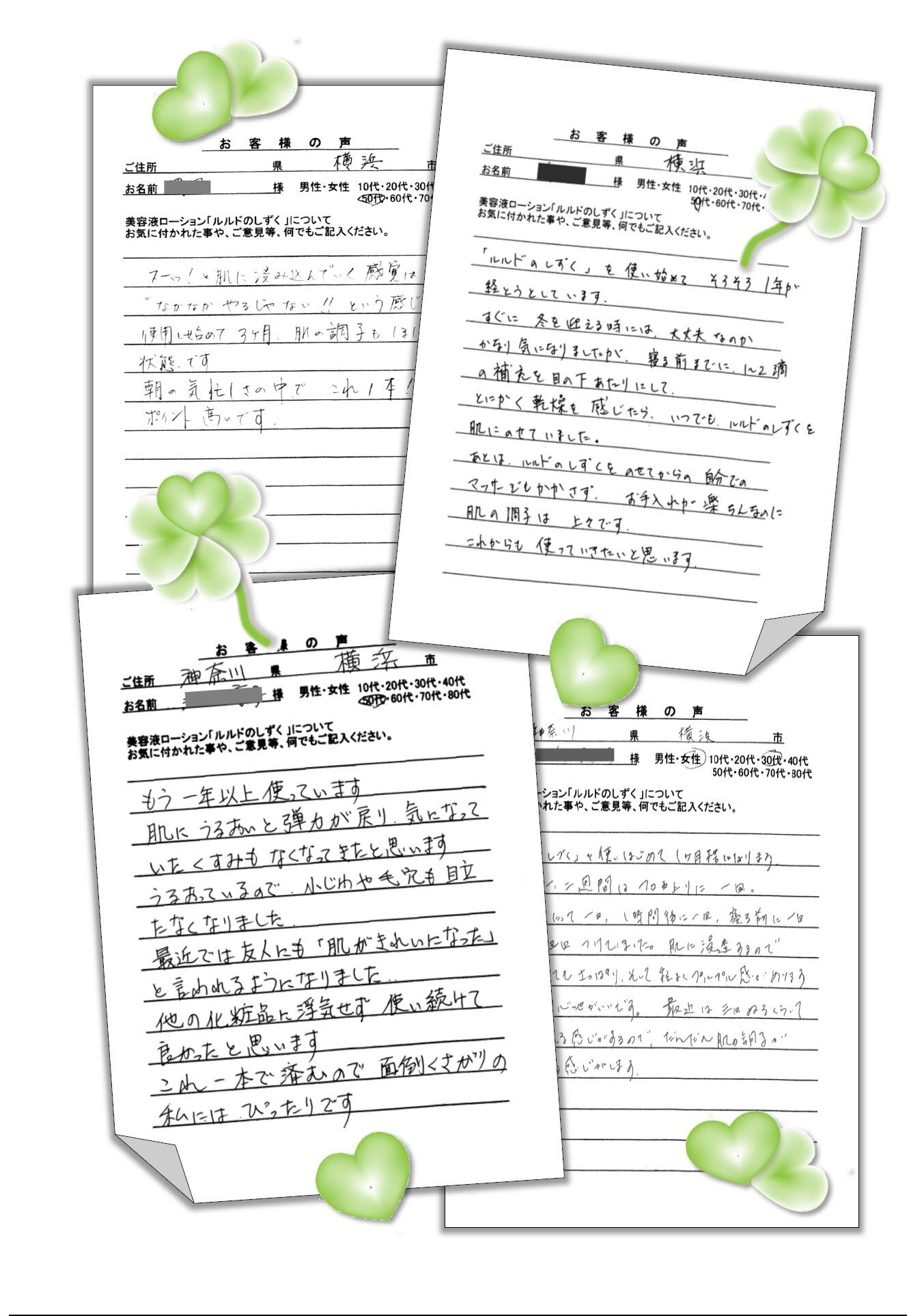 沢山のお客様の声を頂いています。